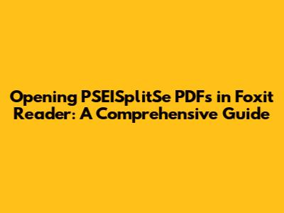 Step-by-Step Guide: Opening a PSEISplitSe PDF in Foxit Reader